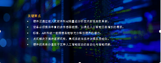 - 硬件正通过嵌入式软件和AI轻量级分析技术实现自我革新。