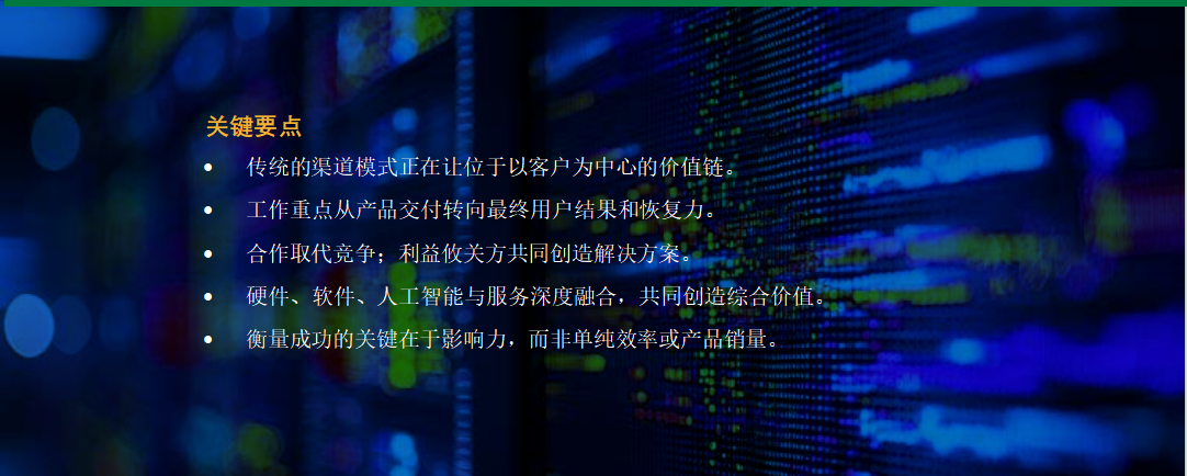 • 在价值链中 ,“ 销售导向转型为共建模式 ”——制造商、集成商与服务商通力合作,共同打造契合企业需求的定制化解决方案。效率让位于适应性,竞争关系演变为合作伙伴关系。