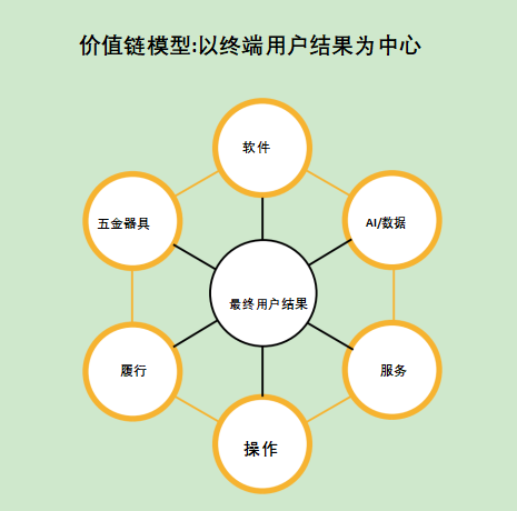 • 如今,这种模式正被价值链框架取代。该框架以客户成果为核心,而非单纯追求产品交付。与传统流水线式生产不同,价值链通过整合硬件、软件、人工智能/数据、服务及运营等要素,共同解决终端用户面临的实际问题。